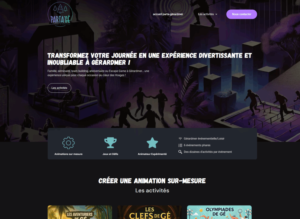 Parta-Gérardmer, c’est votre partenaire loisirs au cœur des Vosges pour vivre des activités fun, dynamiques et mémorables. En famille, entre amis ou en entreprise, nous créons des animations sur mesure : jeux, défis, aventures scénarisées, Olympiades et Escape Games. Encadrées par un animateur passionné, nos activités allient convivialité, cohésion et bonne humeur. Avec nos événements personnalisables, transformez chaque moment en une expérience inoubliable.